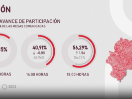 La participación electoral a las 18,00 es en el conjunto de Aragón un 1,55% superior a la de las elecciones de 2023, llegando al 56,28% Por provincias en Huesca hay un descenso del 0,59%. En Teruel la participación ha bajado también un significativo 3,64% respecto a 2023. Por su parte en Zaragoza se incrementa el 2,77% de incremento llegando hasta el 57,17% La jornada electoral está desarrollándose con normalidad. Solamente destacar una urna en un colegio...