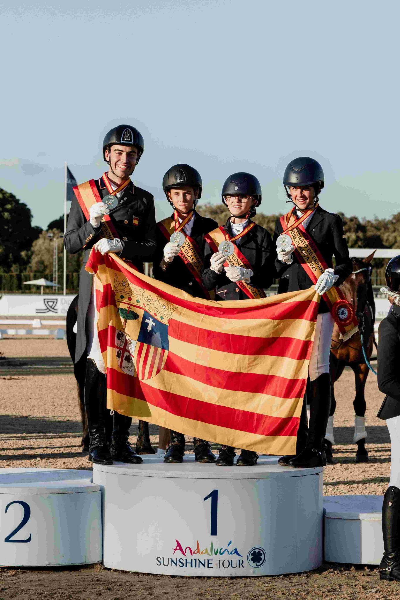 La doma clásica en Aragón ha alcanzado un nuevo hito en el Campeonato de España de Menores, celebrado en Dehesa Montenmedio. Con el lema “Aragón está de moda” resonando en el evento, los jinetes y amazonas de la Comunidad Autónoma lograron una destacada actuación, culminando con la medalla de oro por equipos, un logro sin precedentes en esta competición.