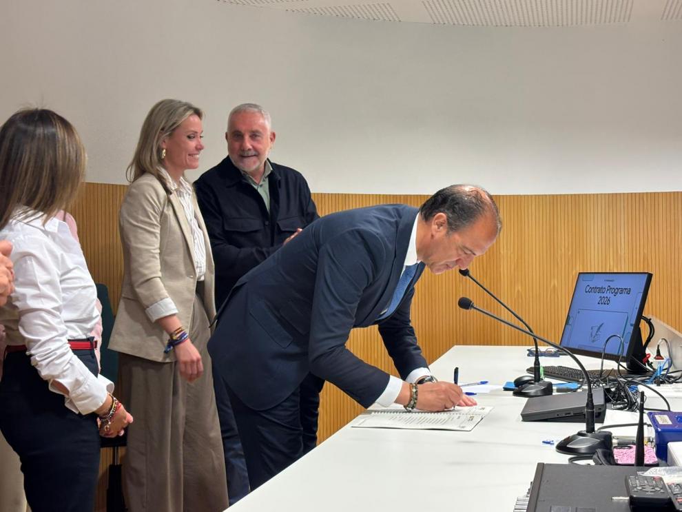 El consejero de Sanidad en funciones de Aragón, José Luis Bancalero Flores, ha firmado hoy contratos de gestión con los gerentes del SALUD y del 061. Este acto se llevó a cabo en presencia de la gerente de Atención Primaria, Pilar Borraz, y el gerente del Sector II, Rafael Lapeña.