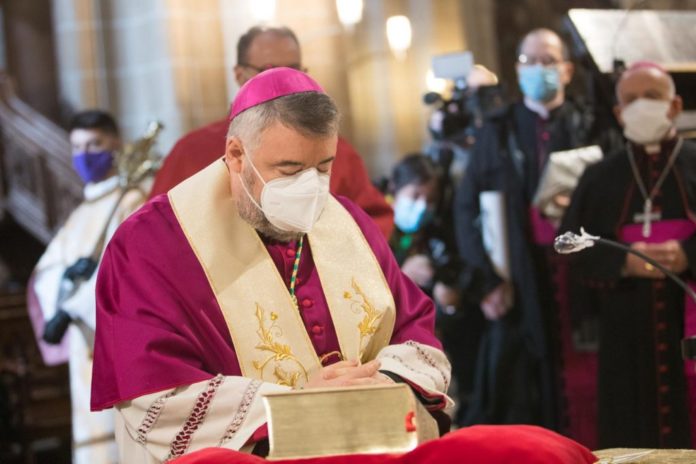 Con ilusión y responsabilidad. Así ha tomado posesión de la Archidiócesis de Zaragoza monseñor Carlos Escribano Subías este sábado, 21 de noviembre, en una jornada que ha comenzado a las 10.15 horas en la catedral del Salvador. Ha sido allí, en la Seo cesaraugustana, donde ha tenido lugar el encuentro del nuevo Arzobispo con el nuncio apostólico de su Santidad, Bernardito Auza, y el administrador apostólico, Vicente Jiménez.