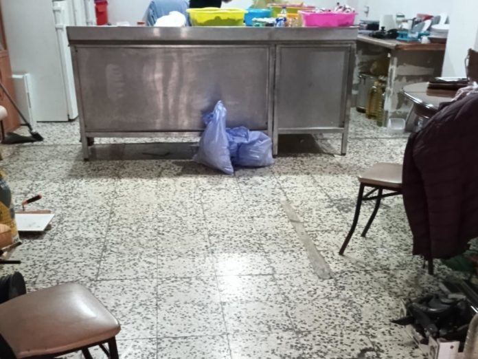 La cocina no cumplía con las mínimas condiciones higiénico-sanitarias. Los inspectores encontraron múltiples deficiencias, como la falta de mantenimiento en las instalaciones y equipos, ausencia de un sistema de extracción de humos, y la presencia de insectos muertos. Además, se observó acumulación de materiales ajenos a la actividad alimentaria, tales como herramientas de construcción y productos químicos. También se detectó una comunicación directa entre la zona de manipulación de alimentos y un inodoro en estado inoperativo, lo cual podía provocar contaminación.