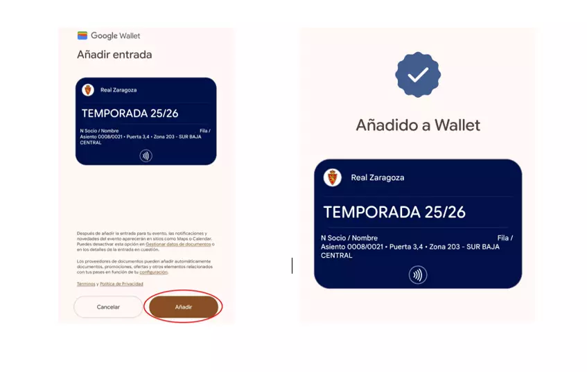 Para activar el nuevo carnet digital NFC, los abonados deben acceder al Área del Socio en la web del Real Zaragoza, registrarse si aún no lo han hecho, y seleccionar la opción “Descargar Abono Digital”. Recibirán un correo electrónico (procedente de no-reply@realzaragoza.com) con un enlace que permitirá incorporar el abono a sus dispositivos.
