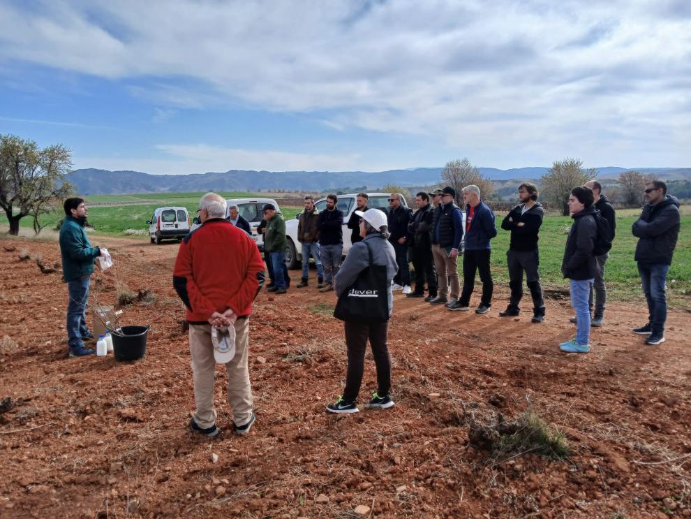 Los asistentes al encuentro tuvieron la oportunidad de injertar variedades autóctonas en cepas de viña americana, llevándose los ejemplares a sus fincas. Marta Estopiñán, técnica de investigación del CITA, destacó la importancia de esta técnica para mantener el material genético local en parcelas de viñas viejas que presentan muchas faltas. Además, se realizó una visita a la parcela de ensayo en Báguena, donde se explicaron los ensayos que se iniciarán este año, incluyendo la recolección y análisis de microorganismos beneficiosos para la recuperación de viñedos.