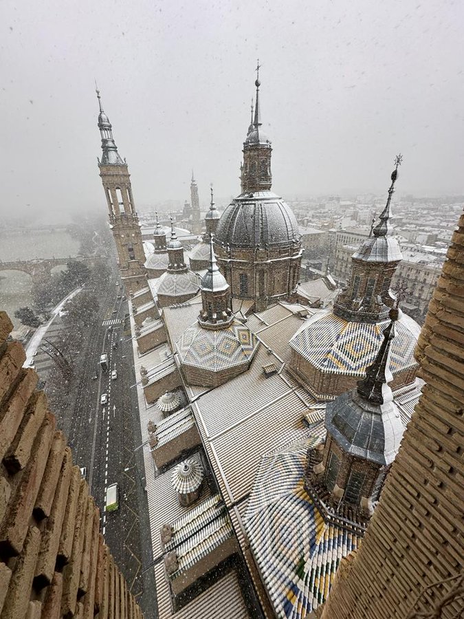 Zaragoza se ha cubierto de nieve; aquella que esperábamos la semana pasada y que no cayó, ha llegado este viernes de sorpresa.