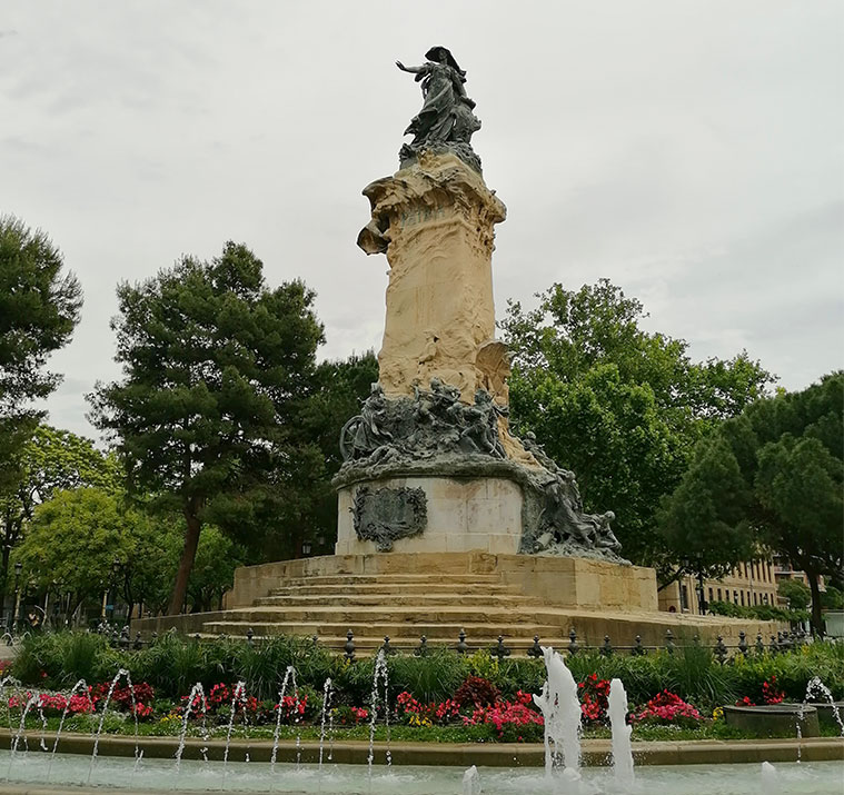 Este monumento, inaugurado en 1908 y realizado en piedra arenisca, piedra caliza y bronce, es uno de los conjuntos escultóricos más destacados de la ciudad. El proyecto de rehabilitación ha sido promovido por el Servicio de Arquitectura del Área de Urbanismo, y se basa en un informe sobre el estado de conservación elaborado por el Departamento de Ciencias de la Tierra de la Universidad de Zaragoza.